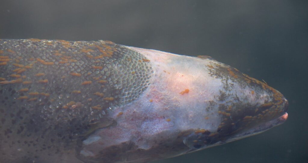 The standards BAP has developed under this structure reflect exactly the conflicts of interest that produced them. Take sea lice—the parasites that devastate juvenile wild fish populations near open-net salmon farms, and one of the most serious and well-documented ecological concerns associated with industrial salmon farming. BAP sets no quantitative limits on sea lice whatsoever. Environmental organizations have independently documented BAP-certified farms with sea lice levels as high as 51 per fish. To put that in perspective, sea lice are not a minor irritation like human head lice: they attach to a fish’s skin, feeding on mucus, blood, and flesh, leaving open wounds that can lead to infection, stress, and death. A salmon carrying dozens of lice is effectively being eaten alive. Under BAP’s framework, though, this number triggers nothing—no warnings, citations, or suspensions.
